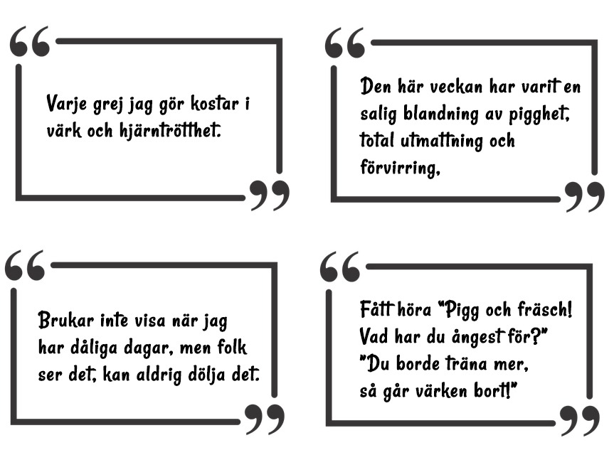 Kan du gissa vem på bilden som precis genomlevt sitt livs tyngsta dag, eller vem som precis kommit hem från sjukhus? Känner du igen en kronisk sjukdom på basen av vad du ser? Kan du gissa vem som har sagt vad när du läser citaten nedan?