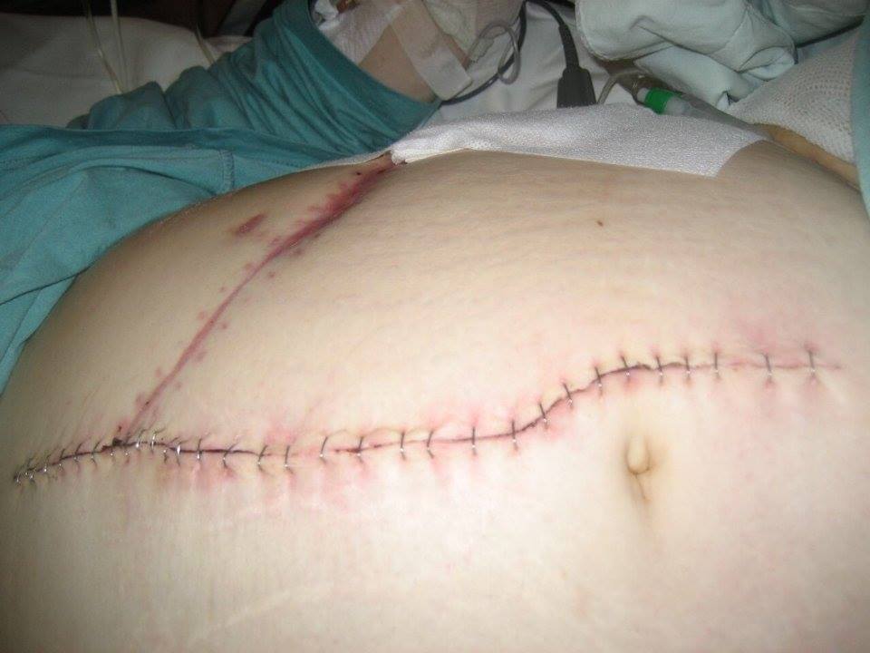 Någon gång i augusti den sommaren sade läkarna att de kommit fram till att de måste operera min mage och undersöka varför vätskan läckte i min mage. Vid detta skede hade jag redan genomgått två bukoperationer i mitt liv. En gång år 2004 när jag hade inflammation i gallblåsan och en annan gång år 2008 då jag födde min son. Det blev bråttom att få ut babyn så det gjordes ett kejsarsnitt.