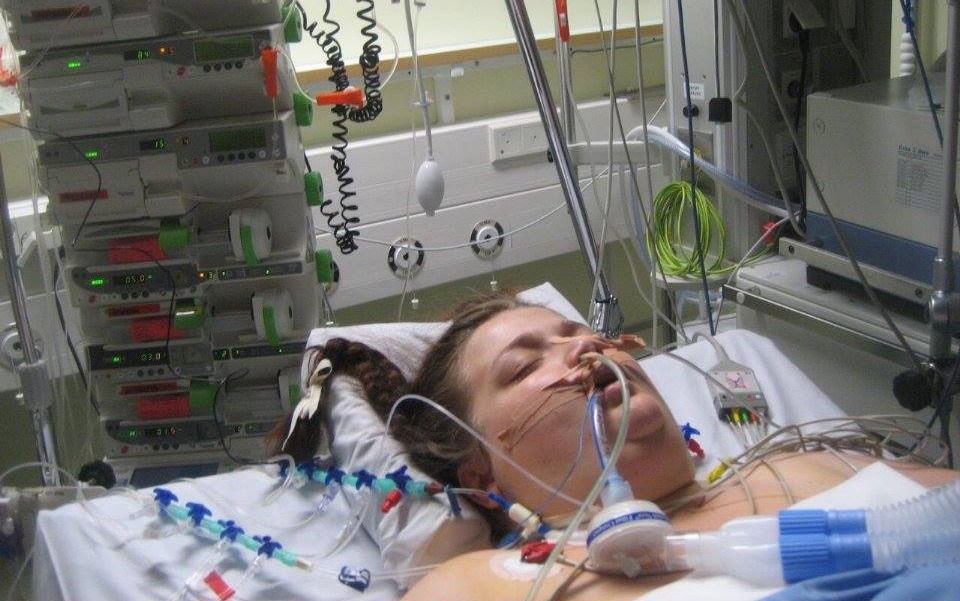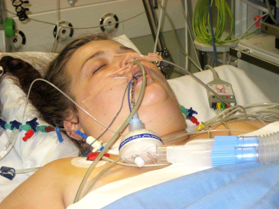 Jag var kopplad till en respirator, det vill säga en maskin som andades istället för mig. Dessutom hade jag näs-magsond, en central venkanyl (CVK) som var kopplad direkt till en stor ven på halsen, och en dialysapparat som filtrerade mitt blod istället för mina njurar som hade lagt av. På grund av att min bukspottskörtel helt och hållet hade slutat att fungera slutade njurarna också fungera, eftersom de har en koppling till varandra.