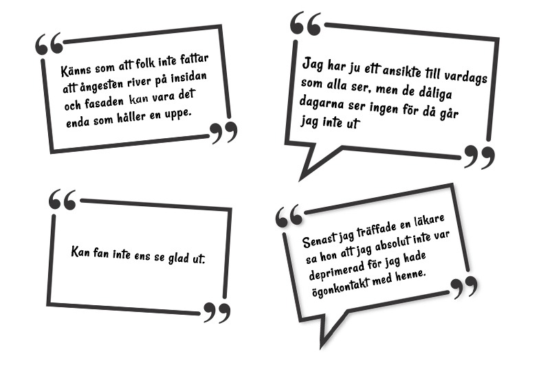 Det finns många missuppfattningar och förutfattade meningar om psykisk ohälsa. Många tror att man måste se bedrövad och tårfylld ut, vara folkskygg och osocial och undvika ögonkontakt. Sanningen är den att psykisk ohälsa kan se ut precis hur som helst.